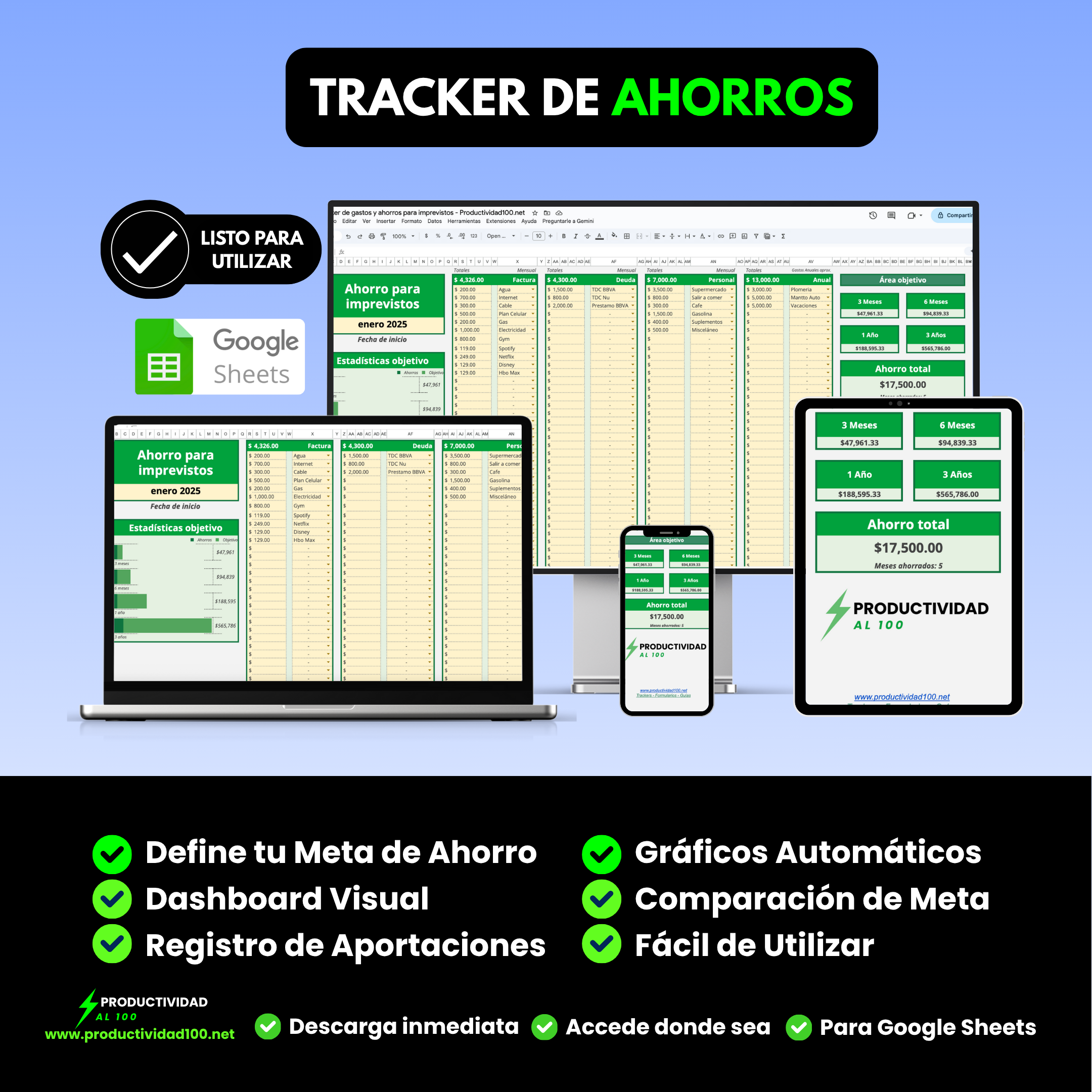 ✅ Descarga inmediata ✅ Para Google Sheets ✅ Accede donde sea
